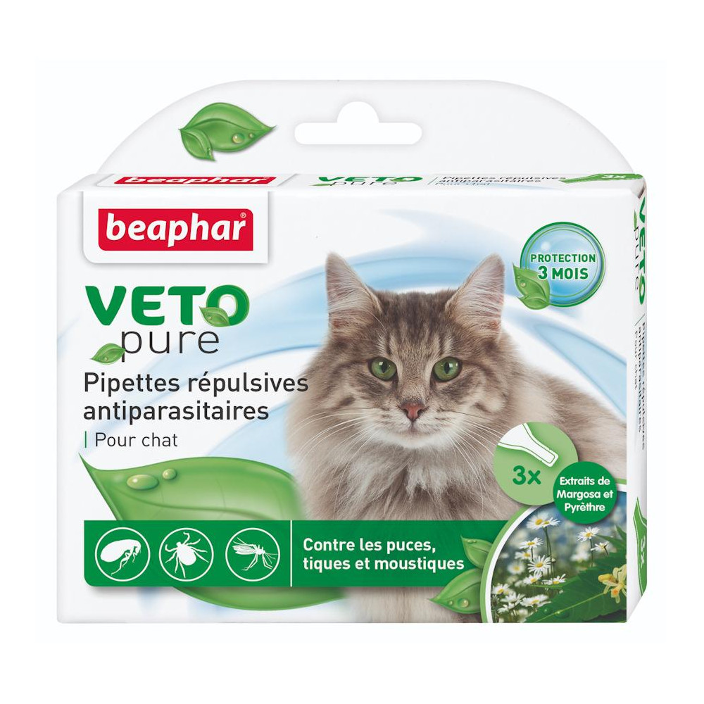 100% натуралните капки Beaphar Veto Pure Bio Spot On Cat са специално създадени за отраснали котки. Екстрактът от нийм (маргоза) е добре познат с репелентните си свойства. Той не трови бълхите и кърлежите, а ги убива блокирайки достъпът им до кислород, като по този начин е напълно безвреден за котката.