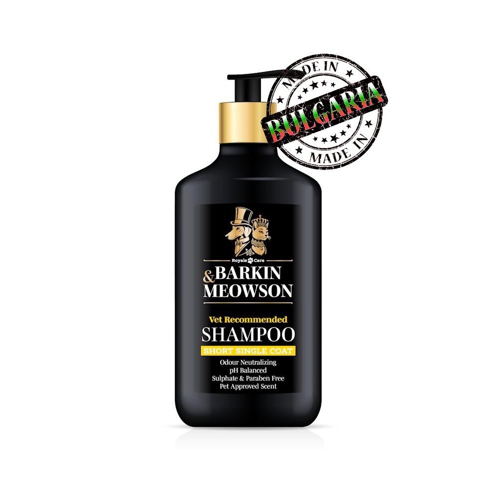 Шампоанът Barkin & Meowson Short Single Coat е със специална формула за кучета с къса козина като по естествен начин възвръща блясъка и жизнеността на козината чрез добавеното масло от пшеничен зародиши. Включеният в рецептата витамин PP намалява скубането и нежно ексфолира. С ненатрапчив аромат, който не дразни чувствителното обоняние на кучетата. Ефикасно елиминира неприятните миризми. Балансирано pH. Без сулфати и парабени. Препоръчан от ветеринари.
