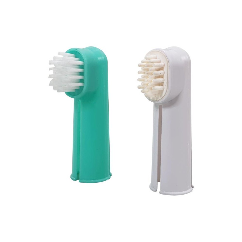 Две отделни четки, които се поставят на показалеца. Тази с коъсма е за почистване на зъбите. Другата, с ламелите, за масаж на венците.