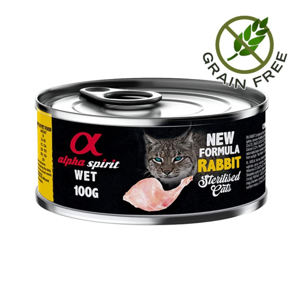 Консервата Alpha Spirit Complete Cat Sterilized Wet Rabbit е най-доброто, което можете да сложите в паничката на вашата кастрирана и вече мързелива писана. Новата още по-добра рецепта е приготвена с висококачествени съставки и таурин гарантиращи оптимална комбинация за балансирана, здравословна и вкусна диета.