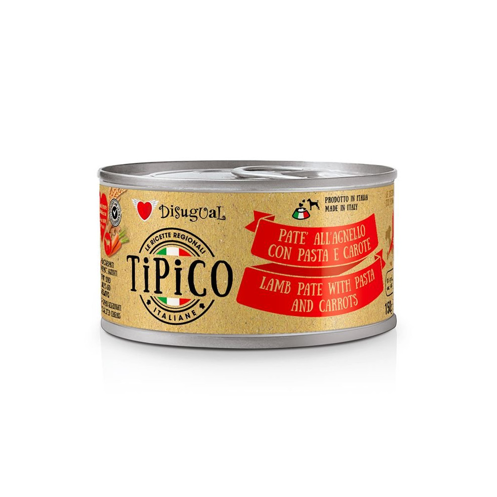 Disugual Tipico е пълноценна храна с агнешко, паста и моркови предназначена за отраснали кучета от всички породи с нормална активност.