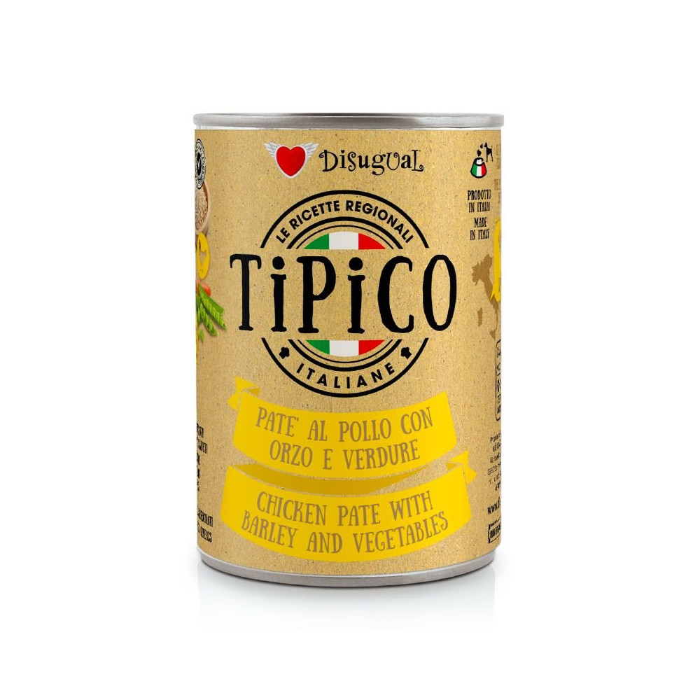 Disugual Tipico е пълноценна храна с пилешко, ечемик и зеленчуци предназначена за отраснали кучета от всички породи с нормална активност.