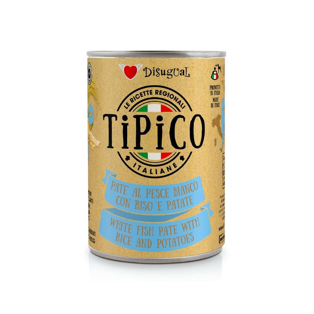 Disugual Tipico е пълноценна храна с бели риби*, ориз и картофи предназначена за отраснали кучета от всички породи с нормална активност.
