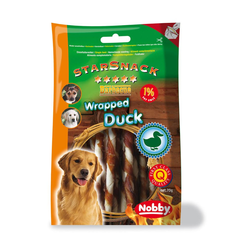 StarSnack BBQ Wrapped Duck е допълваща храна за кучета. Рецептата само с натурални продукти е предпоставка за неустоим вкус, а минималното съдържание на мазнини (само 2%) позволява лакомството да се дава няколко пъти дневно. Отлична награда при обучение за добре свършена работа.