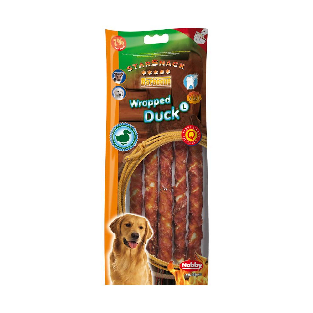 StarSnack BBQ Wrapped Duck е допълваща храна за кучета. Рецептата само с натурални продукти е предпоставка за неустоим вкус, а минималното съдържание на мазнини (само 2%) позволява лакомството да се дава няколко пъти дневно. Отлична награда при обучение за добре свършена работа.