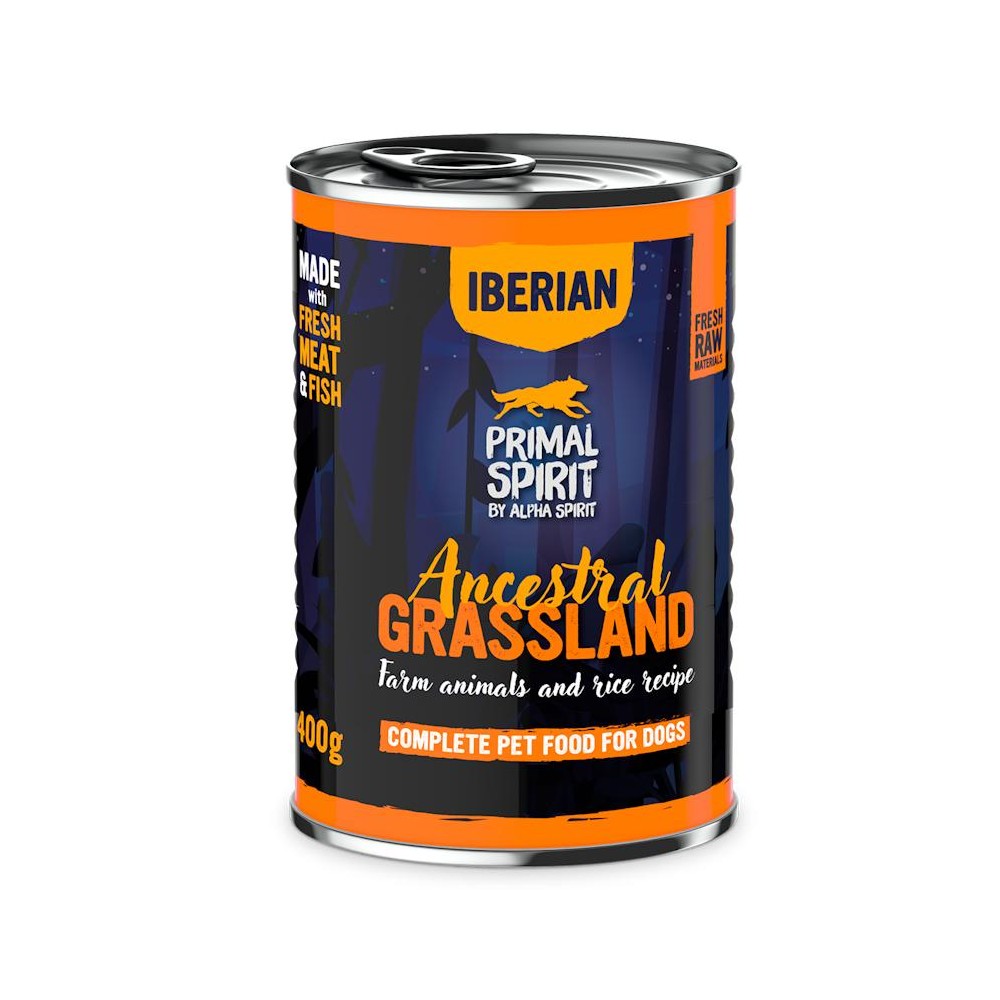 Primal Spirit Ancestral Grassland by Alpha Spirit е пълноценна храна за кучета съчетаваща традиционните вкусове с модерната наука за храненето. Изработена внимателно в Испания консервата съдържа висококачествени пресни съставки осигуряващи апетитна и здравословна храна за вашия домашен любимец.