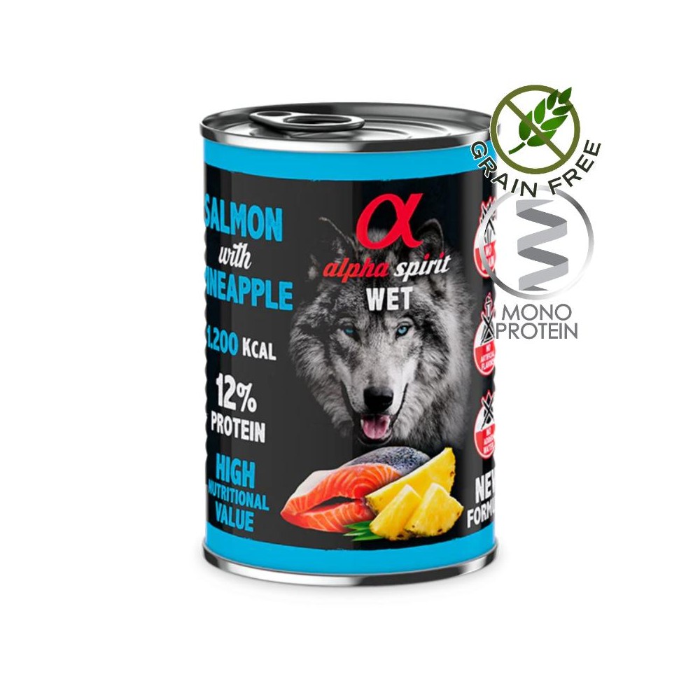 Консервата Alpha Spirit Complete Dog Wet Salmon with Pineapple е най-доброто, което можете да сложите в паничката на вашия най-добър приятел. Новата още по-добра рецепта е приготвена с висококачествени съставки гарантиращи балансирана, здравословна и най-вече вкусна, вкусна диета.