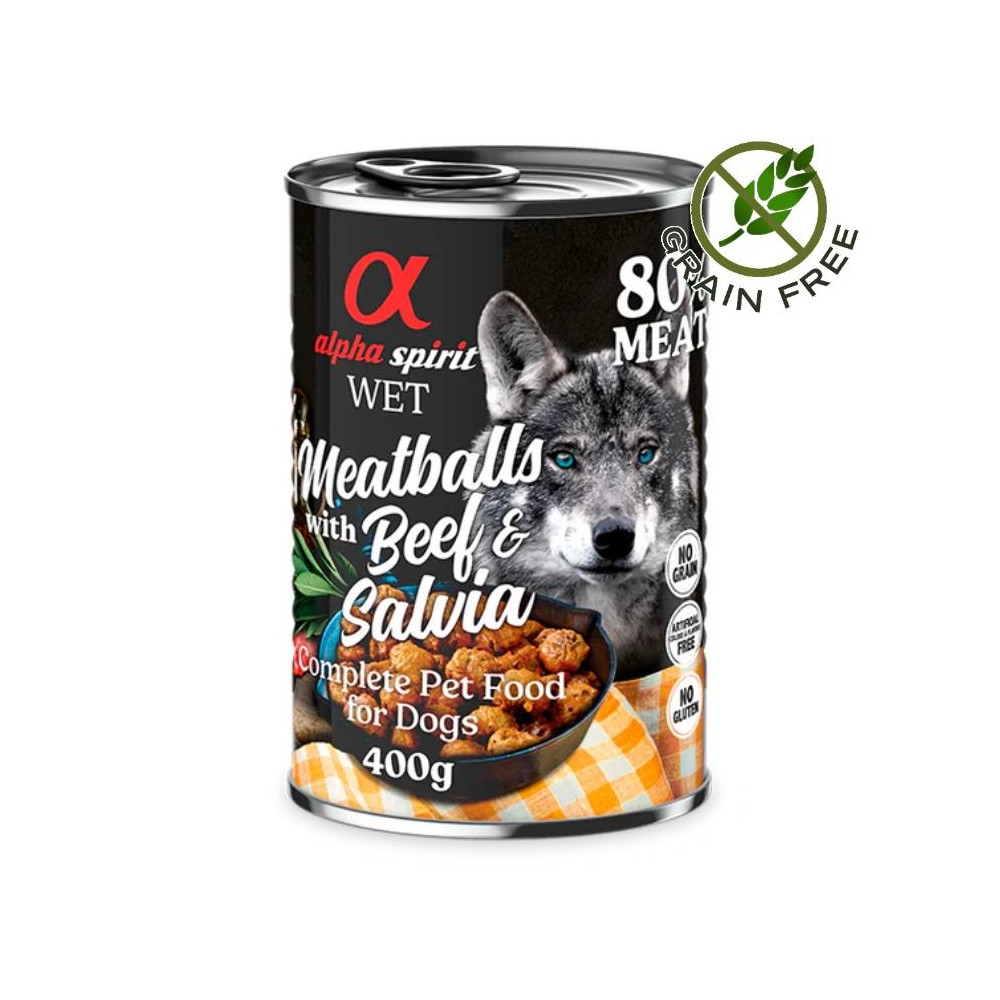 Alpha Spirit Dog Wed Meatballs Beef & Salvia - кюфтенца с говеждо и салвия за кучета (4х400гр на цената на 3)