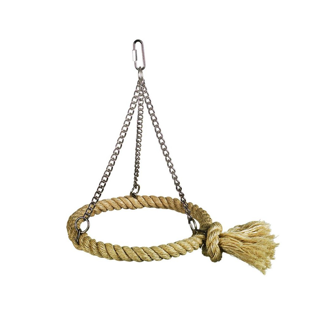 Рингът е изработен от натурално сизалено въже, а металните верижки му придават голяма доза забавна за всяка птица нестабилност.