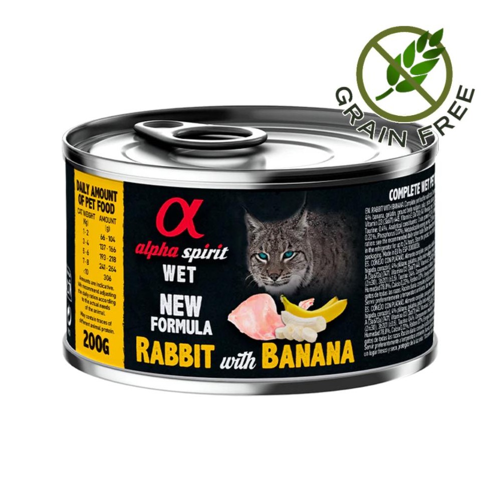 Консервата Alpha Spirit Complete Cat Wet Rabbit with Banana е най-доброто, което можете да сложите в паничката на вашата писана. Новата още по-добра рецепта е приготвена с висококачествени съставки и таурин гарантиращи оптимална комбинация за балансирана, здравословна и вкусна диета.