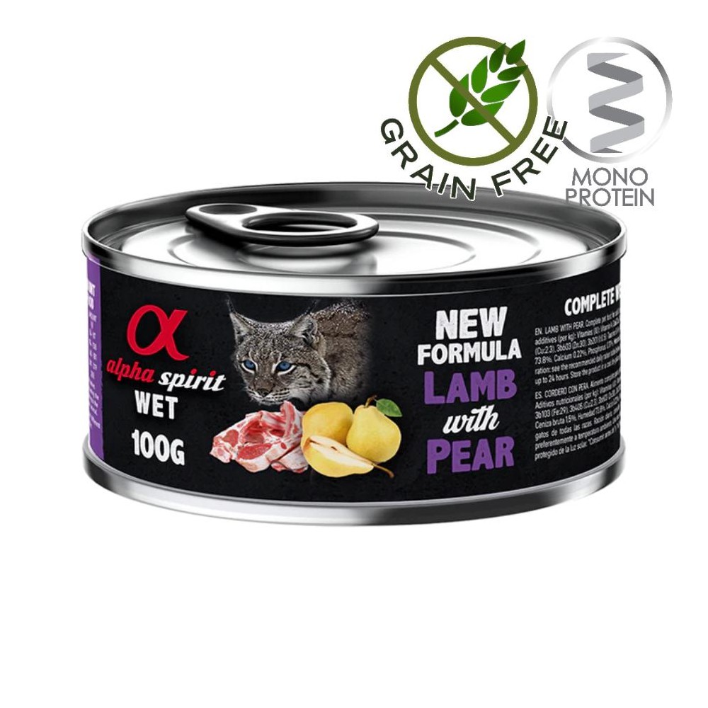 Консервата Alpha Spirit Complete Cat Wet Lamb with Pear е най-доброто, което можете да сложите в паничката на вашата писана. Новата още по-добра рецепта е приготвена с висококачествени съставки и таурин гарантиращи оптимална комбинация за балансирана, здравословна и вкусна диета.