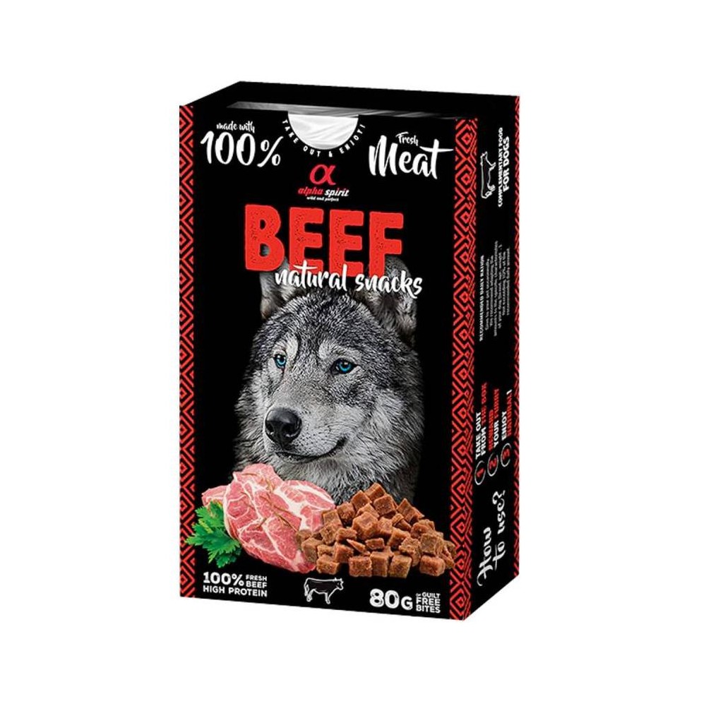 Alpha Spirit Natural Snacks Beef e допълваща 100% натурална храна предназначена да задоволи и най-взискателният вкус.